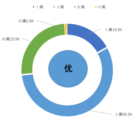 2025年1-7月,全省总计345个考核断面(国考203个,省考142个)中有342个断面为优良水质(Ⅰ~Ⅲ类),所占比例为99.1%,IV类水质断面3个,所占比例为0.9%,无V类、劣V类水质断面。