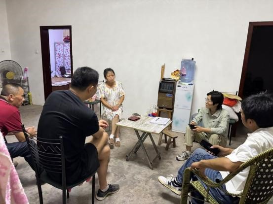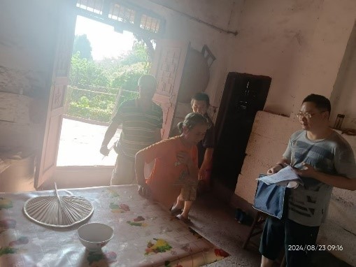 (刘晓聪在手机App填写农户信息并在入户排查访谈时讲解相关政策)
