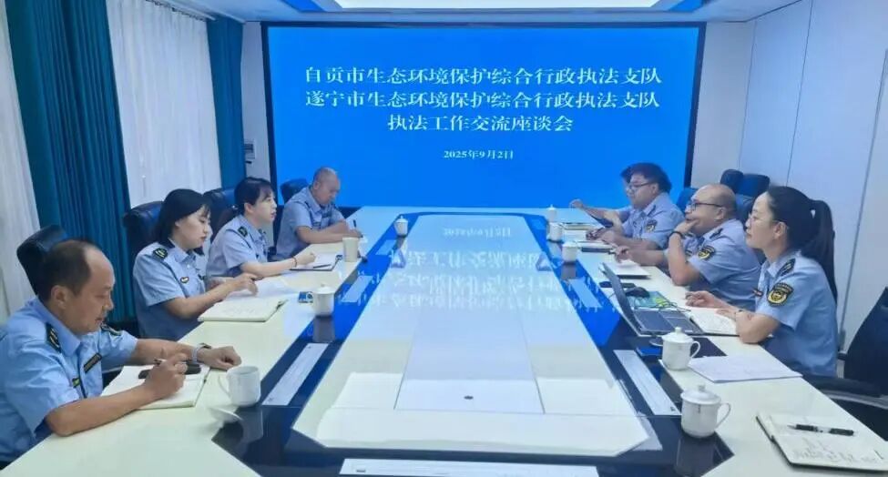 为深化生态环境执法区域协作,破解执法工作中的难点堵点,全面提升执法效能与监管水平,9月2日,遂宁市生态环境保护综合行政执法支队赴自贡座谈交流,为两地生态环境执法工作高质量发展凝聚共识、共探路径。