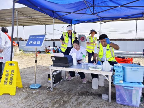 本次演练采用“无脚本、无预告、无预演”的实战化模式,以G1成绵复线高速罗江段(秀水河上游处)一辆运载25吨粗苯的运输车因操作不当侧翻起火,消防废水携带苯系物及部分粗苯流入秀水河,造成水体与大气污染为背景。两地驻市站与属地14个区(市、县)监测站共计150余人以现场实操方式,参与此次演练。