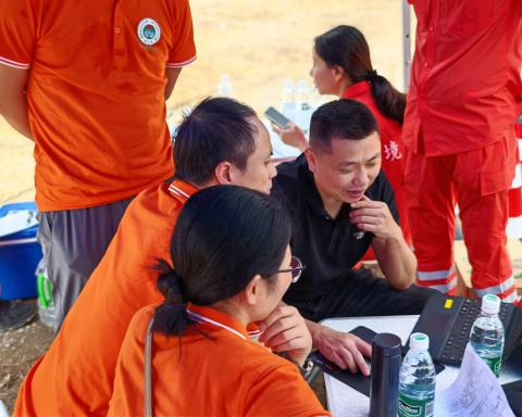 专家、裁判讨论监测结果 德绵监测站站长就双方监测技术进行讨论