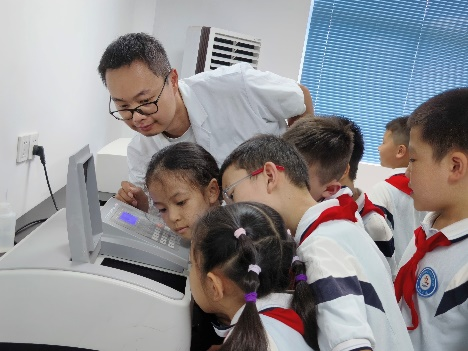 活动伊始,讲解老师首先对德阳生态环境监测中心站进行了简要介绍,并用通俗易懂的语言,向在场的学生、老师和家长们详细讲解了生态环境要素的构成,以及生态环境监测工作的主要内容。随后带领学生们重点参观了监测实验室的应急设备间、采样准备间、重金属分析室以及分光光度实验室,让学生们详细了解了各项仪器设备的监测项目和实验分析原理,并开展风速仪、噪声声级计、PH试纸测试酸碱度等实践操作。同学们争先恐后地参与小实验,在亲手操作的过程中,不仅掌握了风速仪、噪声仪的基本使用技巧,更对环境监测数据的获取过程有了深刻的体会,现场学习氛围十分浓厚。最后通过观看德阳市大气颗粒物与光化学组分站以及水质自动监测站的视频介绍,更对科技力量支撑生态环境监测和守护城市生态安全的重要意义有了更清晰、深刻的了解。