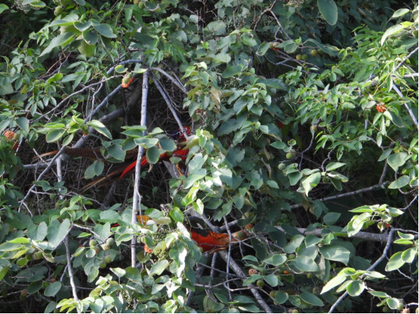 2025年8月下旬,四川省南充生态环境监测中心站与西华师范大学联合监测团队在南部县开展鸟类样线调查时,一阵细碎的枝叶响动打破了林间宁静。抬头望去,两只红腹锦鸡雄鸟正立于构树枝头觅食,悠闲自在的姿态让监测队员不禁屏住呼吸,迅速用相机定格下这“久别重逢”的珍贵画面。