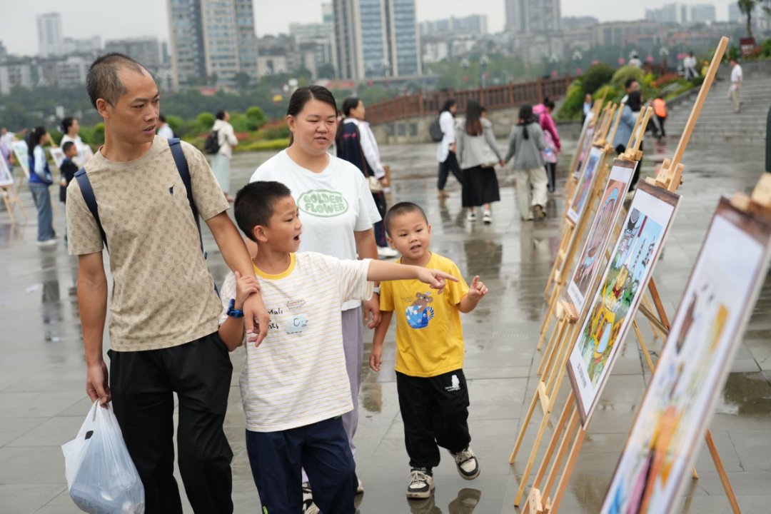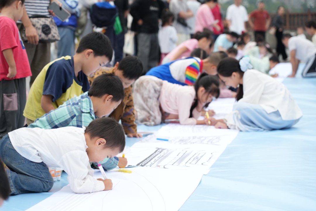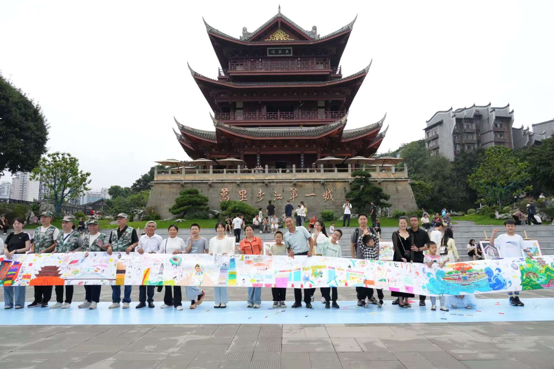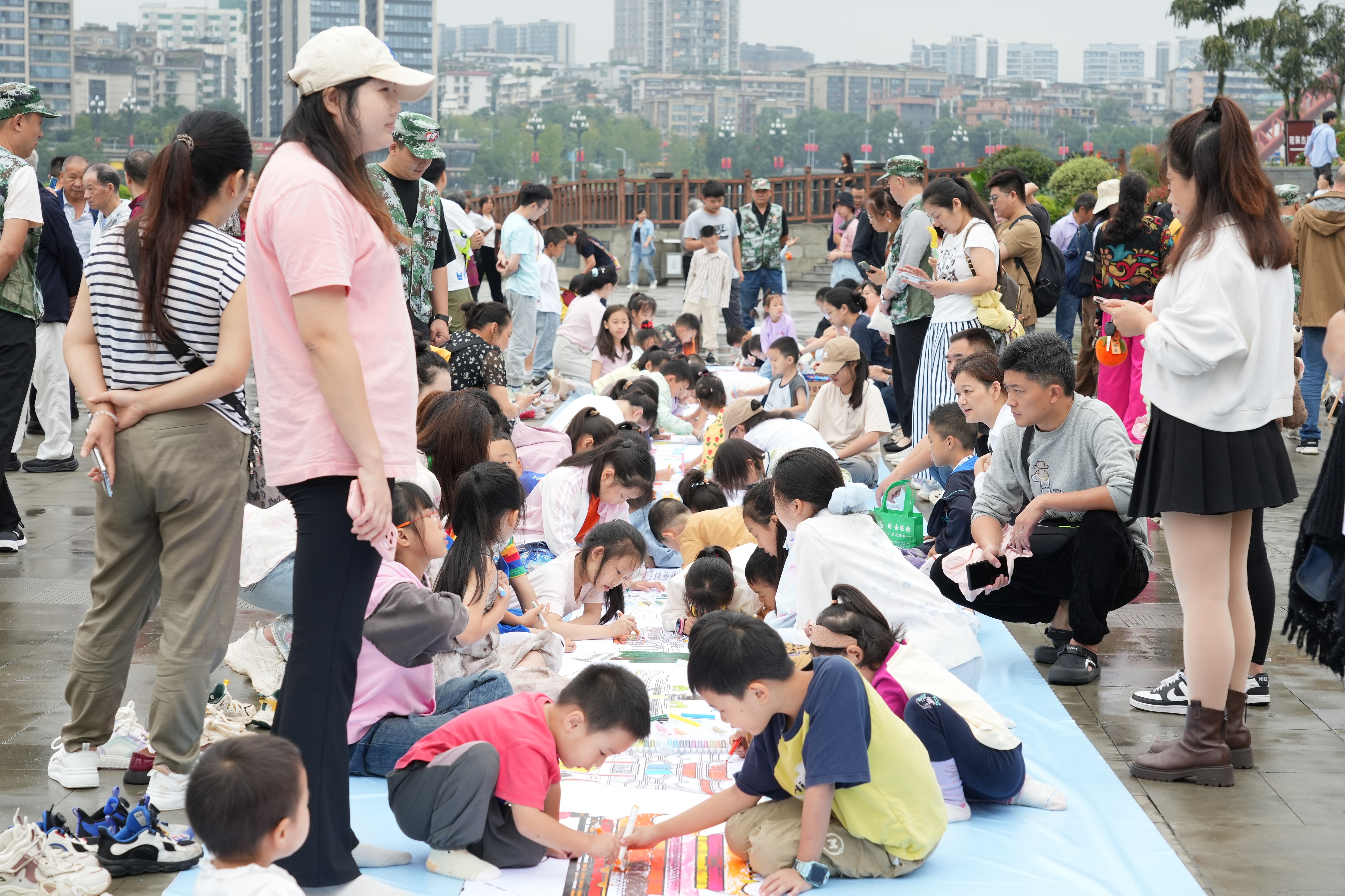 金秋时节,三江叠翠。在万里长江零公里地标——宜宾合江门广场,一场别开生面的“览长江首城,绘美丽宜宾”主题公益活动热闹展开。40余幅青少年书画作品整齐陈列,两张50米长的空白画卷铺展在地,现场近百名小朋友手持画笔,专注涂鸦,共同描绘宜宾的三江六岸。