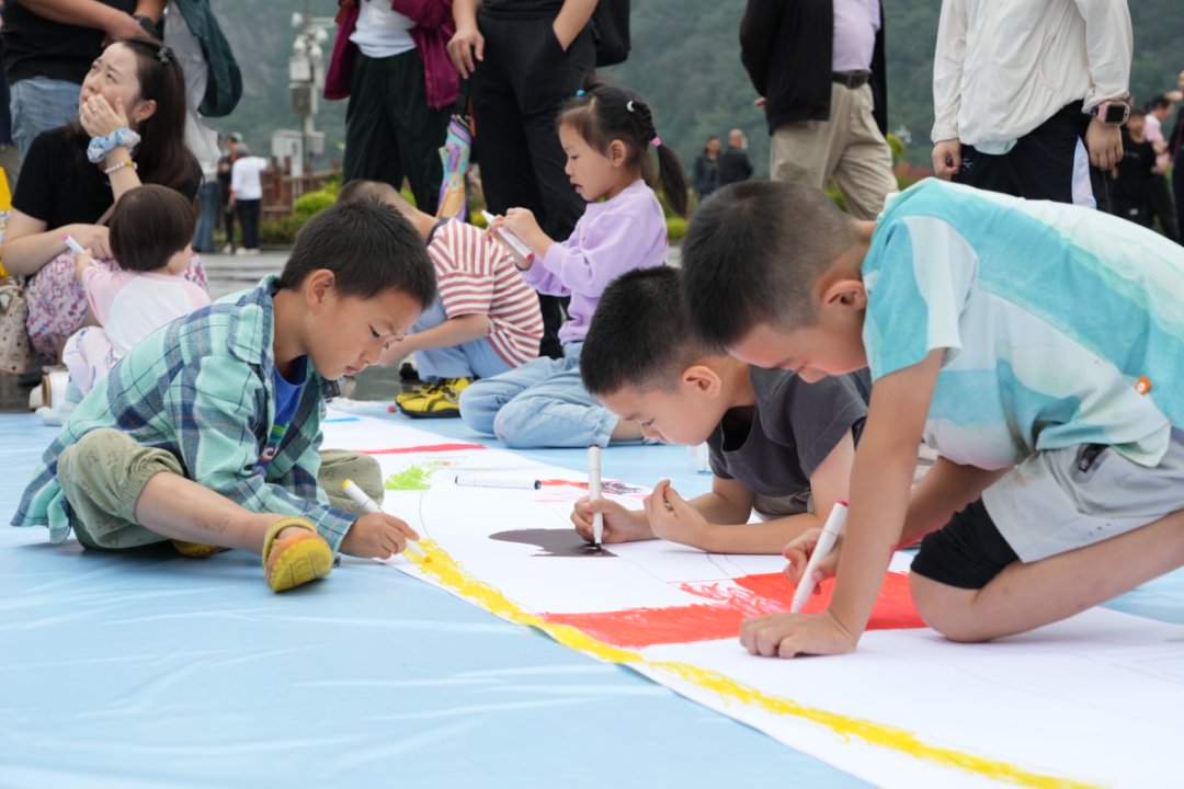 “守护长江,人人有责!”——童心聚力绘绿意。活动尾声,小朋友们、游客和志愿者们手牵画卷,在长江零公里处合影留念。五彩斑斓的画布上,青山叠翠、游鱼嬉戏、白鹭翩飞,与孩子们的笑脸相映成趣,“咔嚓”声此起彼伏,一位摄影爱好者感叹:“这不仅是画,更是孩子们写给长江的承诺。”