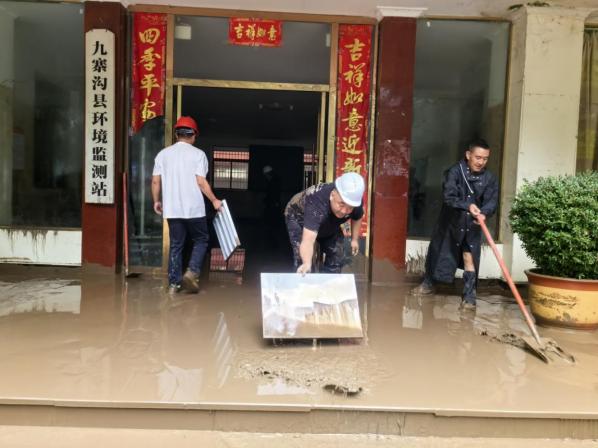 【九寨沟生态环境局】“汛”速反应,开展一线监测。九寨沟县“7·16”洪涝灾情发生后,九寨沟生态环境局迅速启动水质应急监测预案,动员组织全局党员干部及时开展抢险救灾和水质监测,精准掌握水体水质状况。一是全力投入抢险救灾。及时清理档案室、环境应急物资储备室、职工食堂,妥善抢救环境应急物资79件,清理档案400余件,组织清淤机械车4辆清除淤泥1000余平方米。二是有效监控水质状况。及时评估水体污染状况,在泥石流发生点及马踏石国控点进行采样监测,水质COD、氨氮、总磷均达到地表水二类标准,流域水环境质量保持稳定。三是保障饮用水安全。灾情发生后,第一时间开展县城集中式饮用水水源地水质监测,持续对潘家沟、姚家沟和太平沟水源地监测,水源地水质符合国家饮用水标准,让群众吃上“放心水”,受到群众好评。