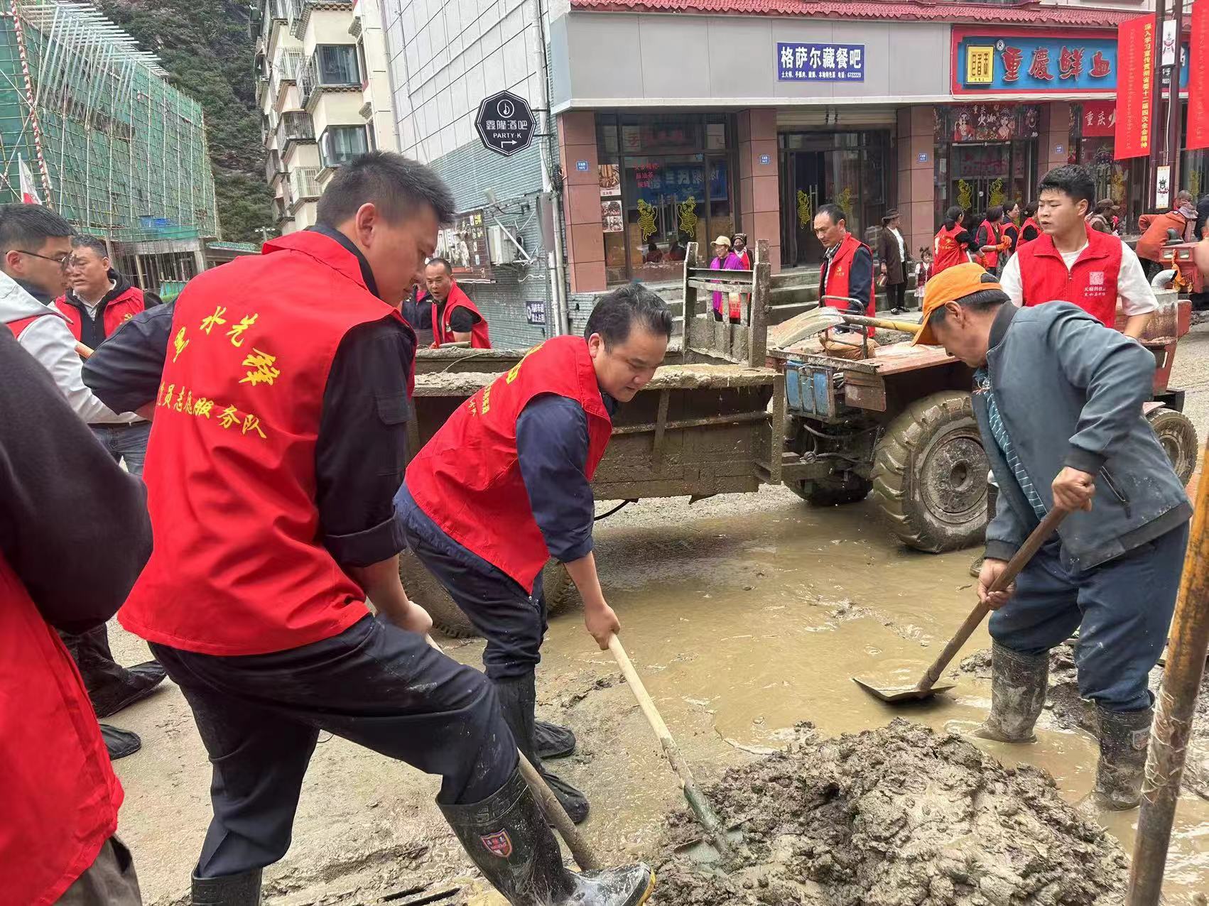 【黑水生态环境局】黑水生态环境局开展“灾后清淤、洁净家园”志愿服务活动。近期,黑水县突发强降性暴雨,引发了滑坡、泥石流等自然灾害,黑水生态环境局组织党员环保志愿服务队开展了“灾后清淤、洁净家园”主题志愿服务活动,环保志愿服务队拿起铁锨、扫帚等清扫工具第一时间赶往受灾街道,走进街道清扫淤泥、冲洗街道,全面清除大雨过后造成的积水、淤泥、垃圾杂物等。经过整治,辖区街道、主干道等公共区域的出行条件和环境卫生得到了明显改善,“红马甲”们不怕苦、不怕脏、不怕累的精神,也带动了更多的群众主动投入到重建家园中来,为加快恢复生产生活秩序汇聚起强大的“志愿者”力量。